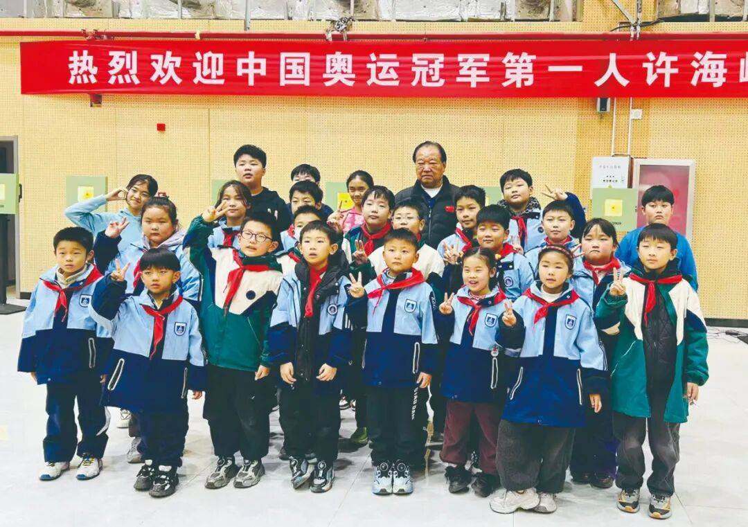 “许海峰老师到访时,特意参观了我们的射击馆,他的到来让社团队员们备受振奋。面对这些零基础起步的孩子,许老师俯身细致观察每个队员的动作,从握枪姿势到瞄准角度,逐一进行专业指导,耐心又认真。”该校小学部教导主任余平回忆起当天的场景仍难掩激动,“我们师生都被许老师的冠军精神深深感染,也直观感受到了‘坚持与专注’的力量,让这堂体育实践课有了更深刻的思想内涵。”